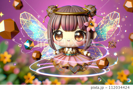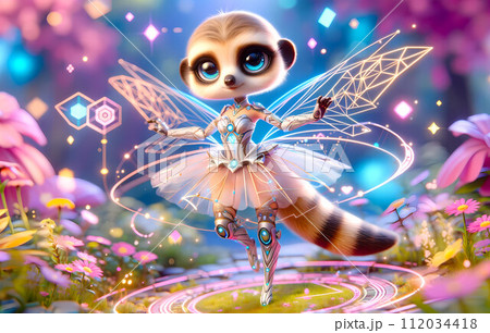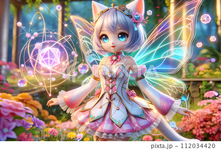 バーチャルアシスタント:お花畑でポーズする妖精:長方形の奇跡