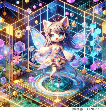 多次元デジタルワールドのアニメスタイル美少女-正方形