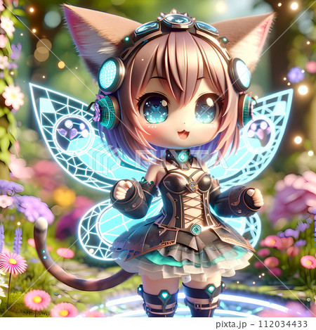 バーチャルアシスタント:お花畑で気合を入れる猫妖精:長方形の奇跡