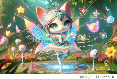 バーチャルの舞台:ダンスをするネコ妖精:長方形の奇跡