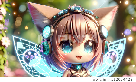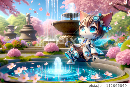 可愛いケモミミバーチャル妖精と春の泉:長方形の奇跡