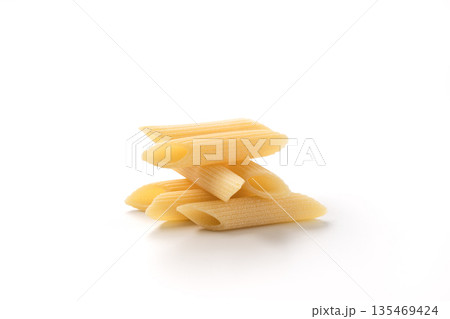 Italian dry fettuccine or tagliatelle pasta over white background with shadow