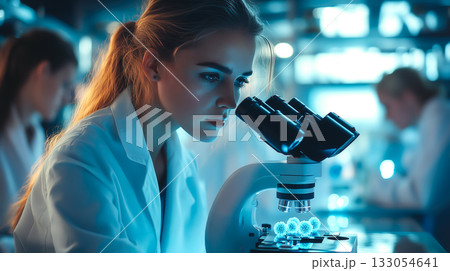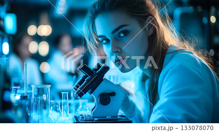 A scientist woman working hard to learn new things in a science lab. Generative Ai.