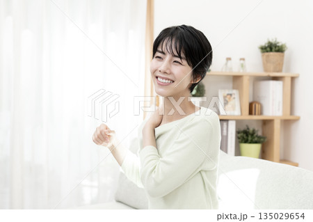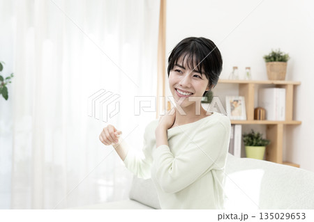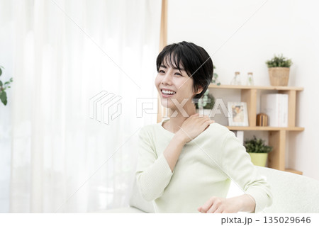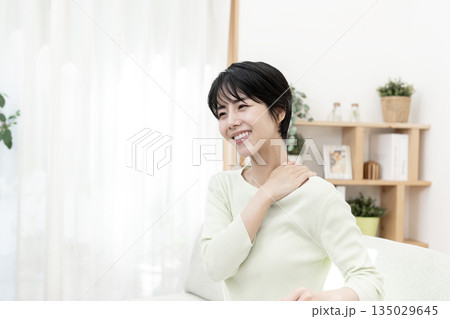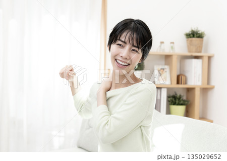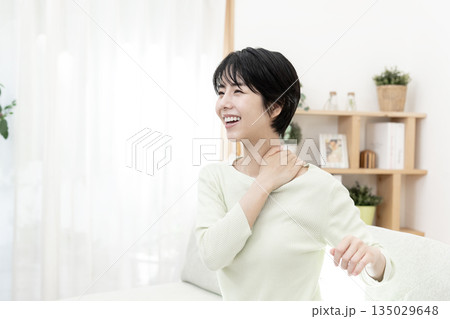 首をマッサージする女性 胸鎖乳突筋メソッド 小顔効果マッサージ ボディパーツ パーツカット