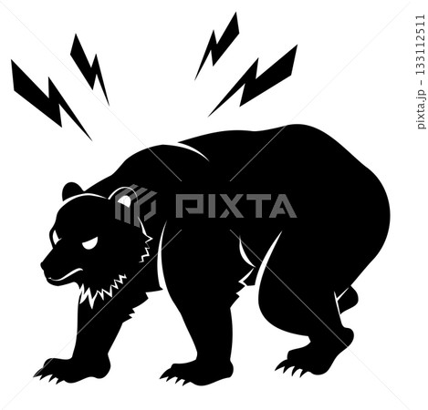 威嚇する熊のシルエット、クマ出没注意を喚起するイラスト