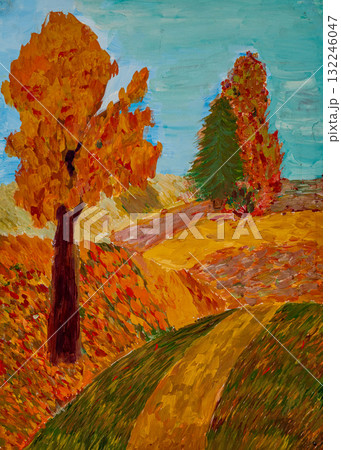 Vibrant autumn landscape showcasing trees and winding path in warm colors