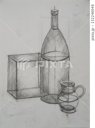 Exploration of shapes in monochrome paint art depicting bottles and pottery