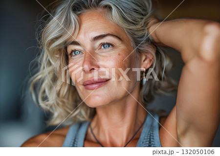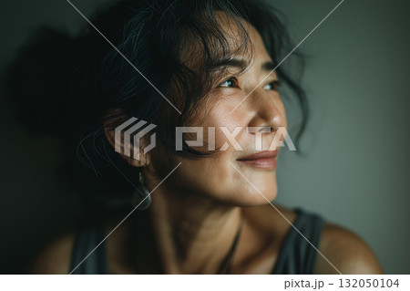 スポーツウェアを着た穏やかな眼差しの女性ポートレート
