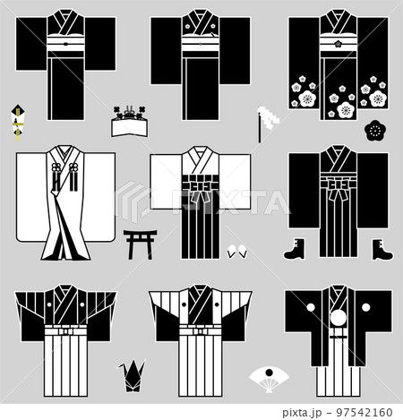ベクター 着物 正月 紋付袴 留袖 振袖 アイコン セット