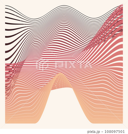 Pink, peach, blue, background of linear waves vector abstract art and technology. Gradients that are steep the geometry of the future