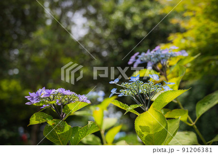 青と薄紫のヤマアジサイ