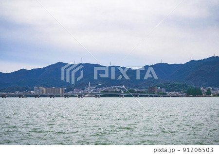 びわ湖と対岸の風景