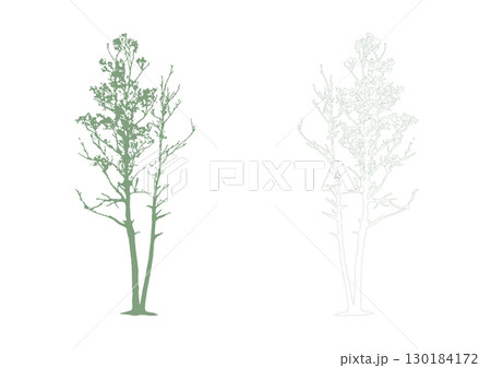 シラカバの添景_シルエットとアウトラインのベクターイラスト2点セット_建築図面向け