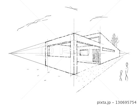 住宅地の中で個性を発揮する建築デザインを検討するエスキスのイメージ