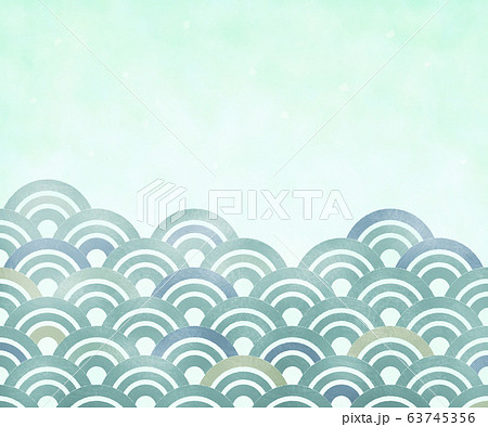 青海波 バナー背景(336:280)手描き風(緑系)〔JPG/PNG背景透過〕