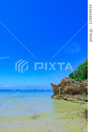 石垣島平久保ビーチの迫力ある岩と南国の海景色 エメラルドブルーの海ビーチ,砂浜,大岩,海,青空,透明