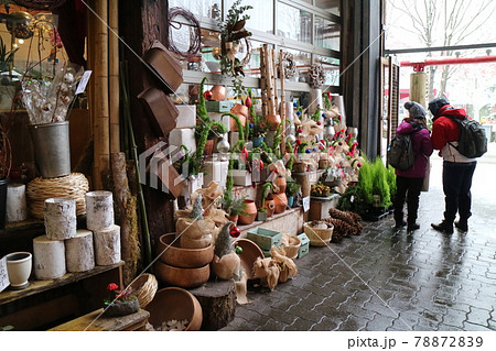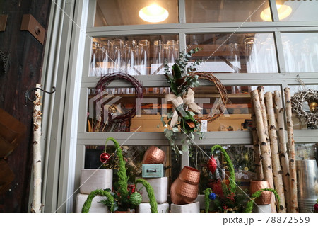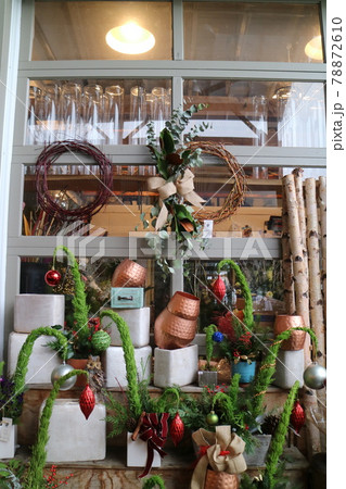 海外のクリスマスのガーデンショップのディスプレイ