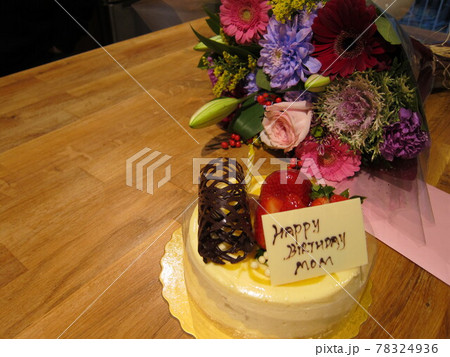 お母さんへのお誕生日ケーキとお花のプレゼント