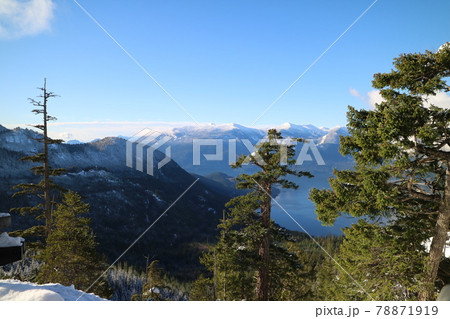 カナダの真冬の雪山の景色