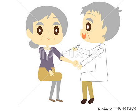 予防接種の注射を受けるおばあさん