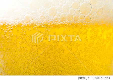 Golden Beer with Effervescent Bubbles and Frothy White Foam Head in Extreme Close-up Detail