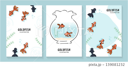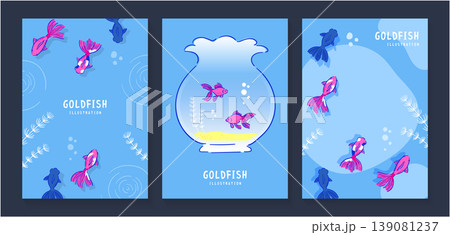 手描き風の金魚と金魚鉢を組み合わせた淡色ポスターテンプレート3点セット