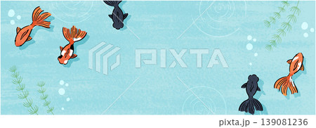 水色テクスチャの水中空間に金魚を散らした横長サマーバックグラウンド