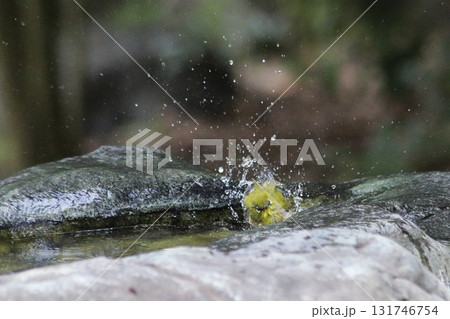 真夏に水浴びをするメジロ