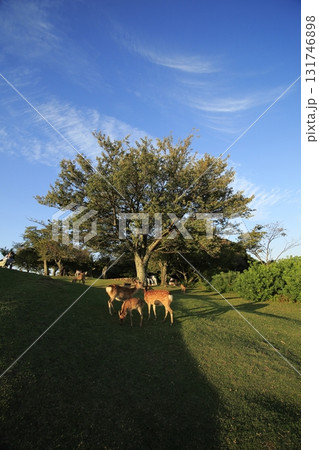 木陰で昼寝する鹿たち