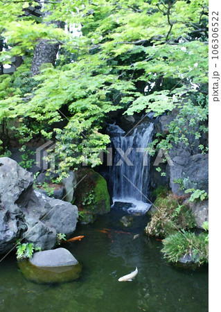 小滝と鯉たち イラスト風