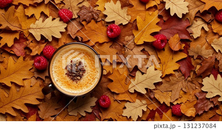 コスモスとキンモクセイ、秋の落ち葉の夢のハーモニー_H