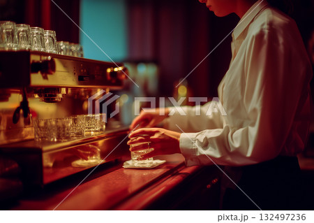 A woman is making a drink at a bar