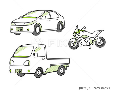 普通乗用車・中型車・二輪車のイラストセット