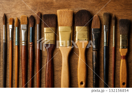 使い古した絵筆、ブラシ、刷毛、絵筆のセット