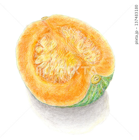 色鉛筆で描いたかぼちゃの手描きイラスト
