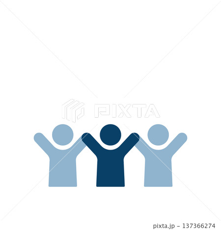 成功や勝利を喜ぶ三人の人物が並んだアイコン