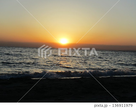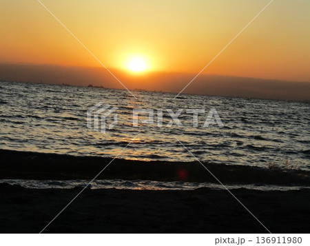 春一番吹いてる検見川浜海岸に打ち付ける白波