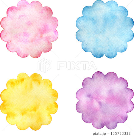 【セット素材】水彩で描いた花の形のカラフルなミニフレーム
