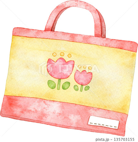 おけいこバッグ(赤)の水彩イラスト
