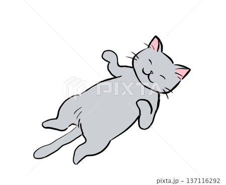 丸くなって眠るグレーの猫 ゆるいイラスト