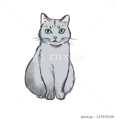 お座りしているグレーの猫