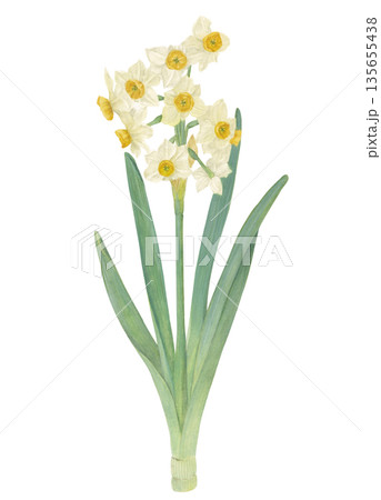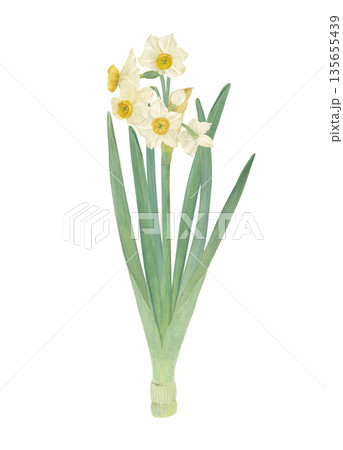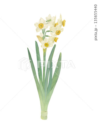 水彩手書きのフレッシュなトマトとスイートバジルのカットイラスト素材