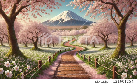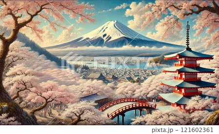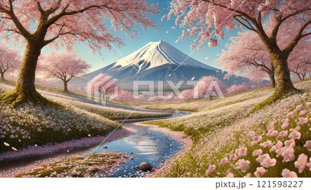 【AI生成画像】桜と富士山AIアートAIイラストAI絵画AI風景画