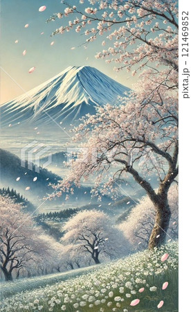 【AI富士山】ひさかたの 光のどけき 春の日に しづ心なく 花の散るらむ 桜日本AI生成画像AI絵画