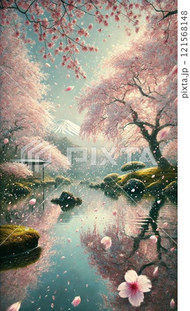 【AI富士山】花さそふ 嵐の庭の 雪ならで 桜春日本AI生成画像AI絵画AIアートAIイラストAI画