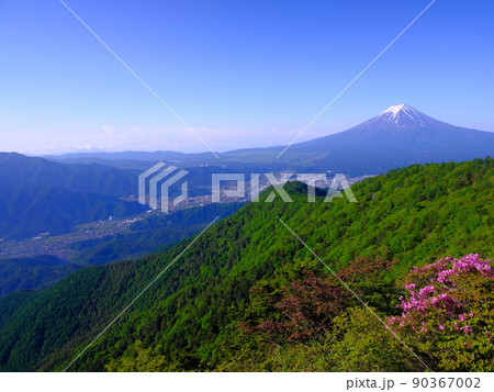 20200605開運山三つ峠からのミツバツツジと初夏の富士山