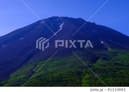 20210523河口湖大石公園から5月の朝の青空快晴の逆さ富士山