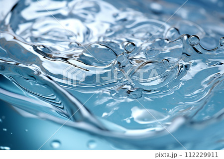 AI-generated content. Liquid hyaluronic gel, abstract closeup bubbles, over blue background. Aging, skin care concept