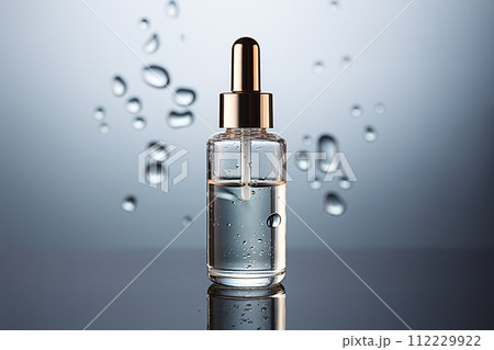 AI-generated content. Liquid hyaluronic gel cosmetic, transparent bottle with pipette. Aging, skin care concept
