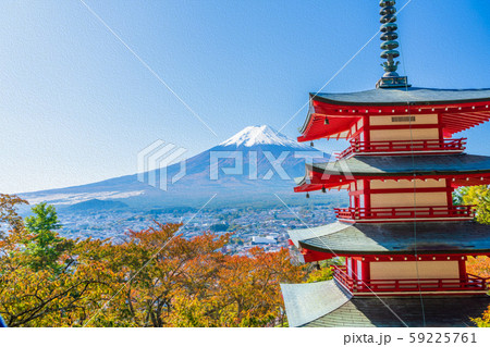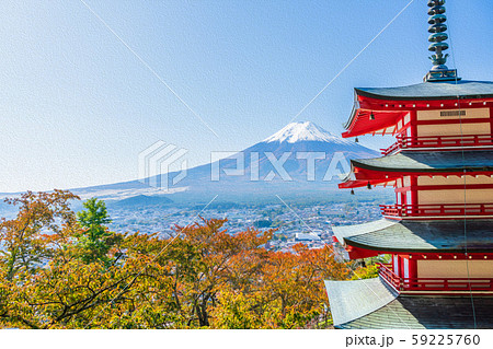 山梨県 新倉富士浅間神社 秋 秋晴れ